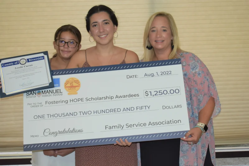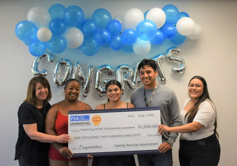 “We are honored to support Family Services Association’s Fostering Hope initiative, which makes attaining a post-high school education a more achievable goal for foster youth in our community,” expressed Vice-Chairman Johnny Hernandez. “The San Manuel Band of Mission Indians truly believes that education is the key to a better future and FSA is facilitating a path to success with their Fostering Hope program.